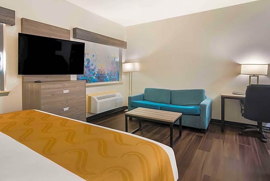 In the kitchen, guests will find a refrigerator, a microwave and a tea and coffee maker. The suite is furnished with a desk and a seating area.